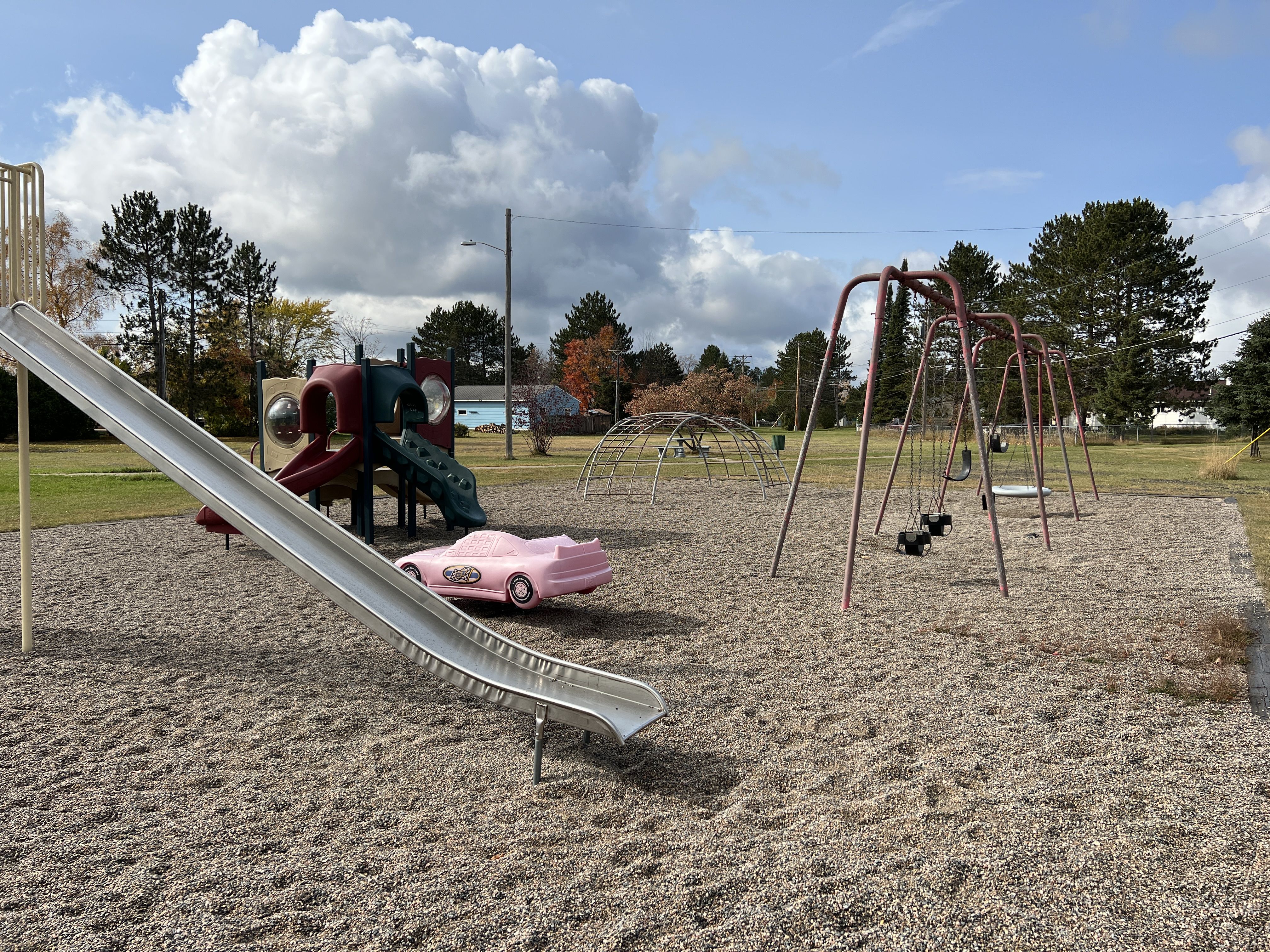 The City has updated the children's playground, located across from the Shopping Center. Picnic tables with shelter. This park is getting all new equipment, with expected installation of summer 2025.